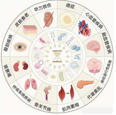 从医学角度看,衰老表现为一系列可测量的病理变化。四种最具临床意义的衰老标志包括:基因组不稳定(主要表现为DNA损伤累积(双链断裂、mtDNA突变))、表观遗传失调(主要表现为DNA甲基化混乱、组蛋白修饰异常)、蛋白质稳态丧失(主要表现为错误折叠蛋白堆,β-淀粉样蛋白、tau)、营养感性失调(主要表现为mTOR/AMPK/胰岛素信号通路异常)这些变化不仅加速衰老,还增加癌症、糖尿病、神经退行性疾病的风险。