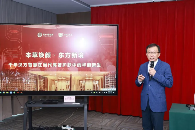 北京同仁堂健康药业股份有限公司知识创新发展事业部总监孙峰以《本草焕颜·东方新境:千年汉方智慧在当代高奢护肤中的华丽新生》为题,展示了传统中医药理论与现代科技融合的创新成果。详细介绍了从原料筛选到产品功效验证的全流程,为高奢护肤市场的发展提供了传统与现代结合的典范。